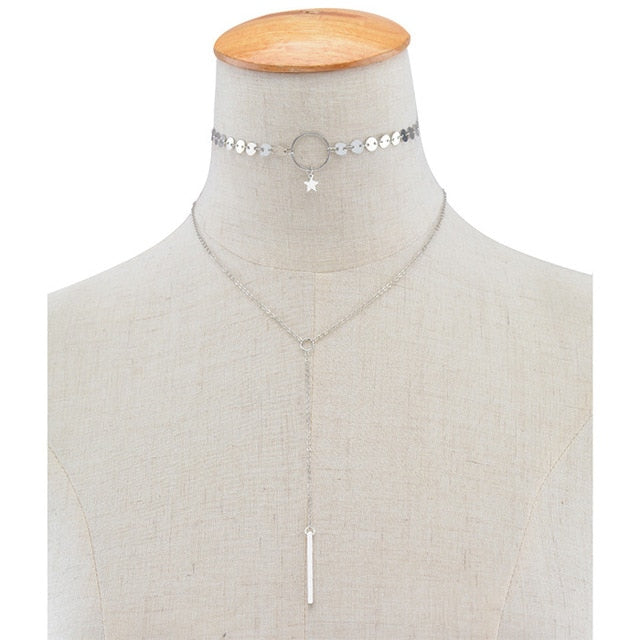 Fashion Necklace Multilayer Gold Silver Womens