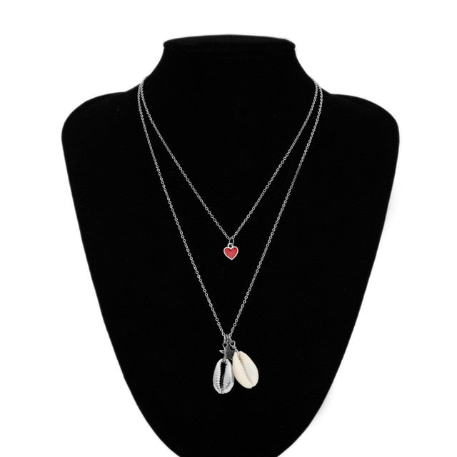 Heart Star Cowrie Shell Pendant Necklace for Women Gold Silver Color Chain Choker