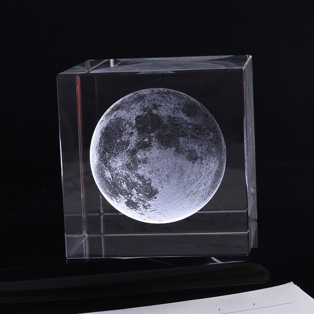 3D Laser Engraved Moon Crystal Cube K9 Crystal Craft Sphere Home Decor Ornament Globe Birthday Gift Decoration Accessories