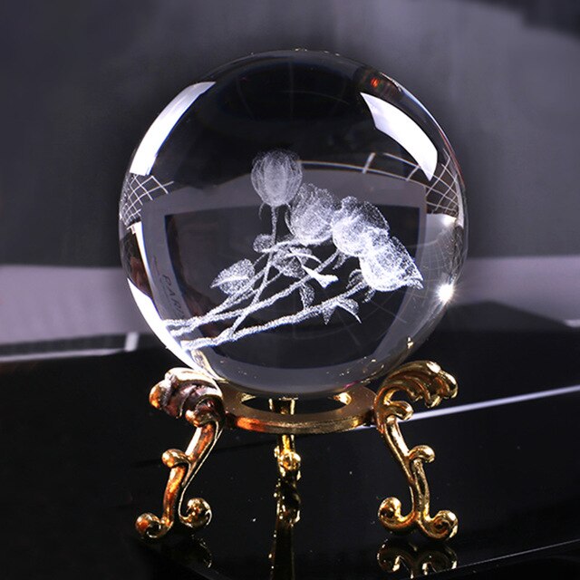 60mm 3D Laser Engraved A Bunch of Roses Sphere K9 Crystal Glass Ball for Birthday Gift Souvenir Home Decor Ornament for Lovers