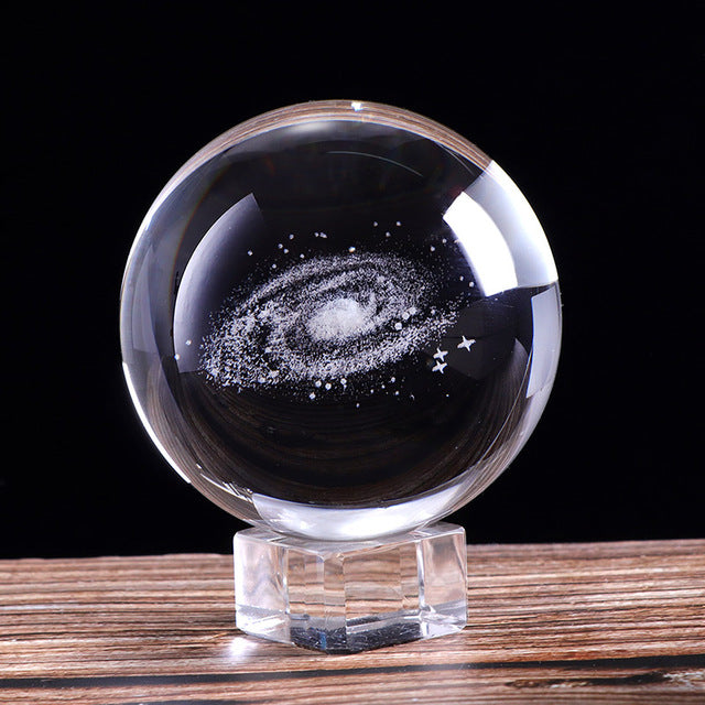 60mm/80mm 3D Laser Engraved Galaxy Crystal Ball Miniature Model Crystal Craft Sphere Ornament Globe Glass Home Decor Gift