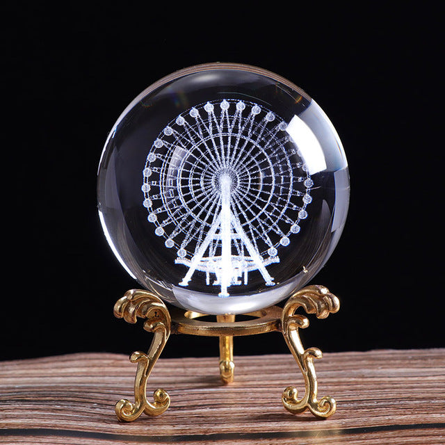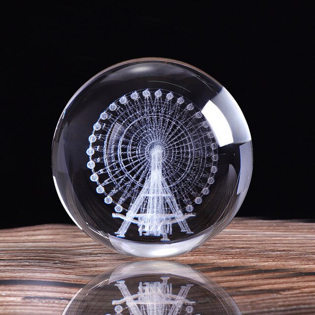 60mm Crystal Ferris Wheel Ball 3D Laser Engraved Miniature Model Sphere Glass Craft Globe Home Decoration Ornament Gift